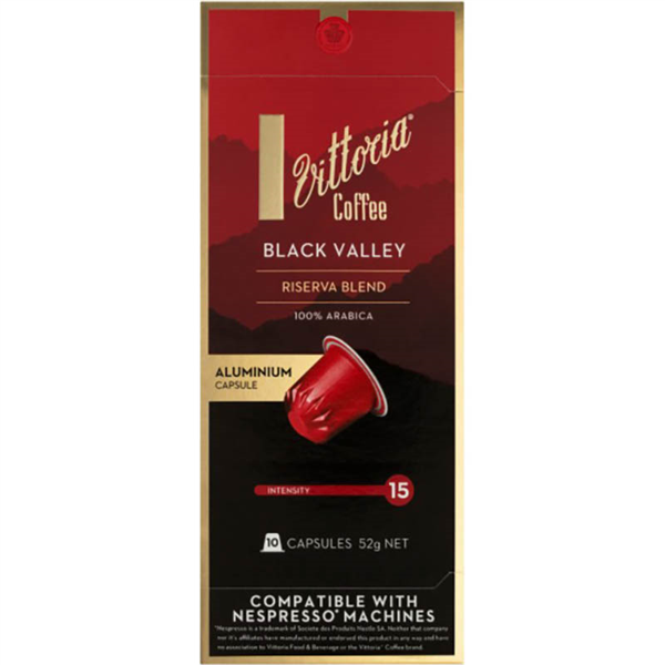 VITTORIA NESPRESSO COMPATIBLE COFFEE CAPSULES BLACK VALLEY PACK 10