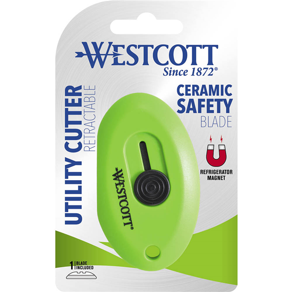 Westcott's Magnetic Retractable Ceramic utility cutter has comfortable rounded edges and can easily be carried in your pocket or on your keychain