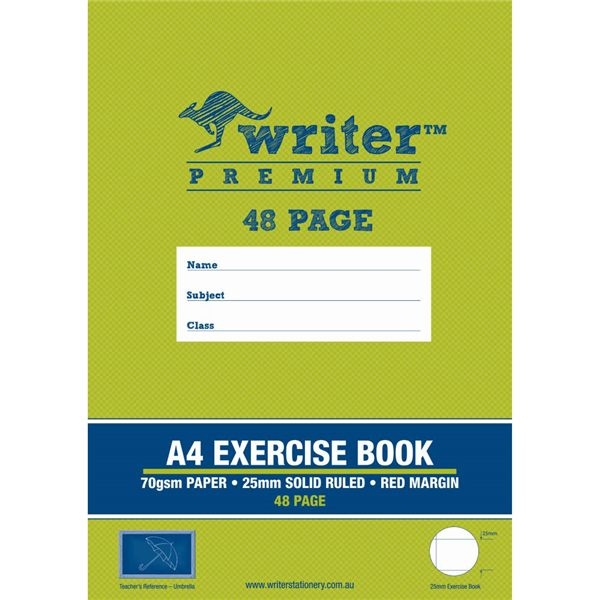 WRITER PREMIUM EXERCISE BOOK RULED 25MM 70GSM 48 PAGE A4 UMBRELLA