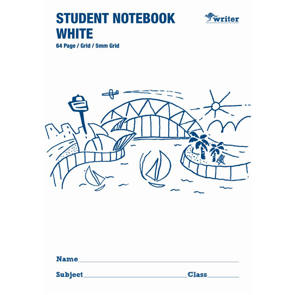WRITER STUDENT NOTEBOOK 5MM GRID 64 PAGE 250 X 175MM WHITE