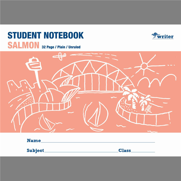 WRITER STUDENT NOTEBOOK PLAIN 32 PAGE 250 X 175MM SALMON
